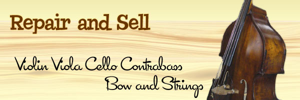 バイオリン、ビオラ、チェロ、コントラバス(ウッドベース)等の楽器及び弓の販売はもちろん、楽器(バイオリン、ビオラ、チェロ、ウッドベース)の修理や調整、 弦、駒、弓、楽器ケース、弓ケース、ウッドベース用ピックアップ、ウッドベース用アンプなど各種弦楽器に関する小物類の販売も行っています。